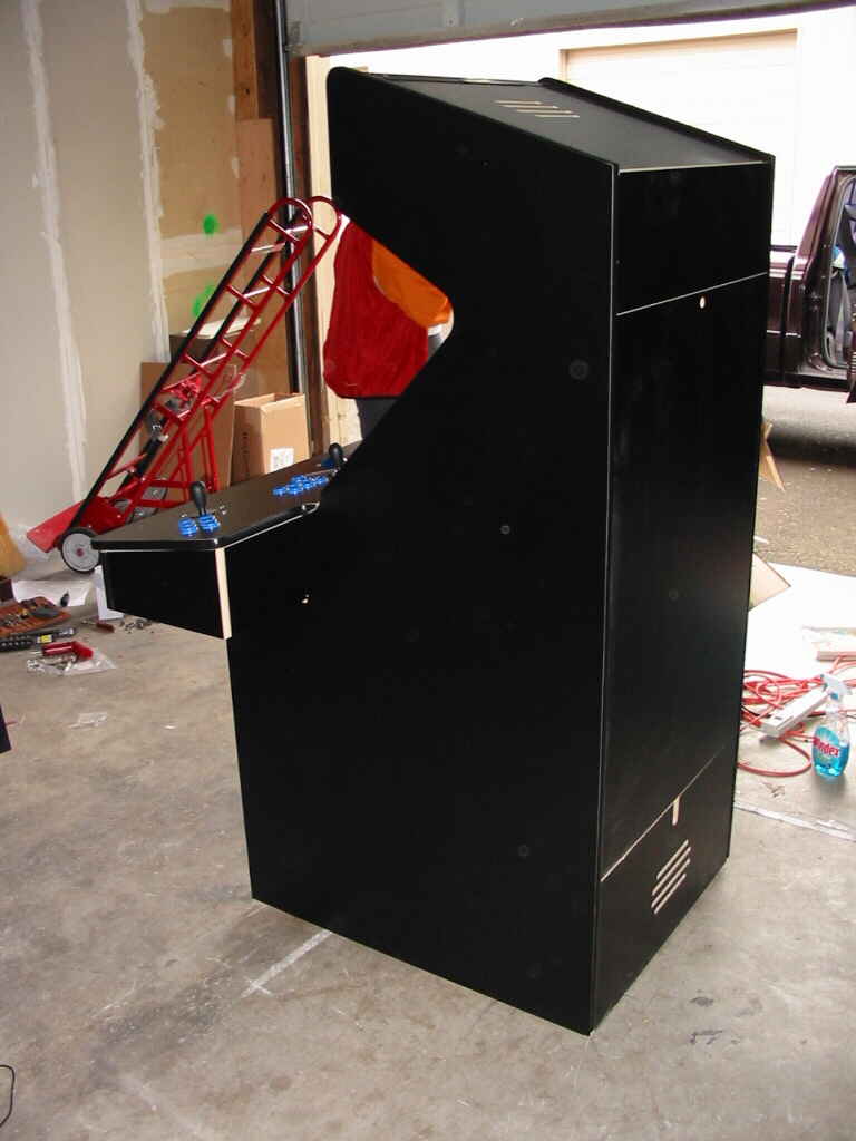 | Here's the cabinet with T-molding installed, control panel and cp box installed and all the controls. And marquee | ![]() |