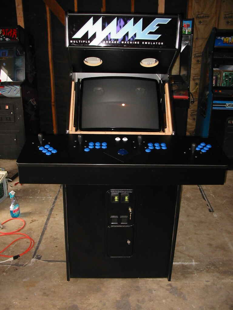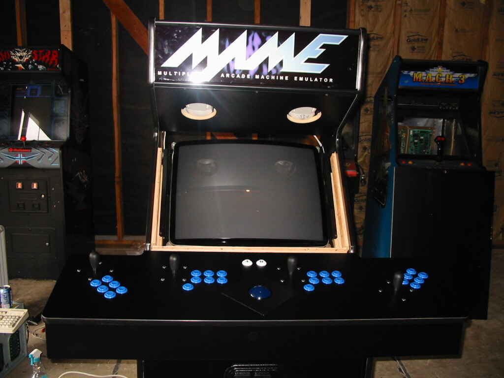 MAME will allow for up to 3000 games (more every update) to be played, so I chose to design my cabinet to support the most games possible without replacing the control panel. This is one of my prototype 27" cabinets showing off some arcade games in action, you can see the cabinet taking shape..: